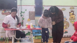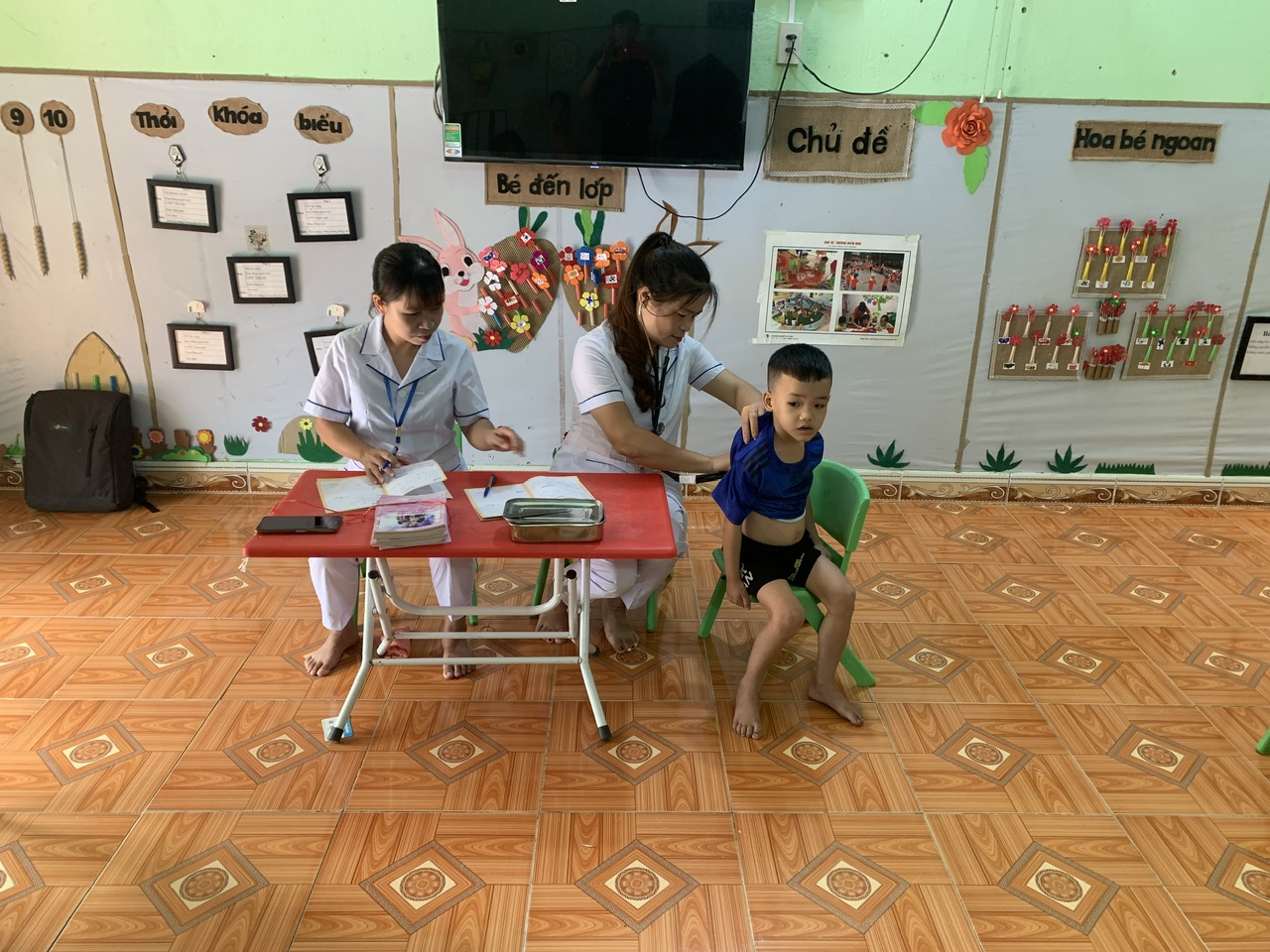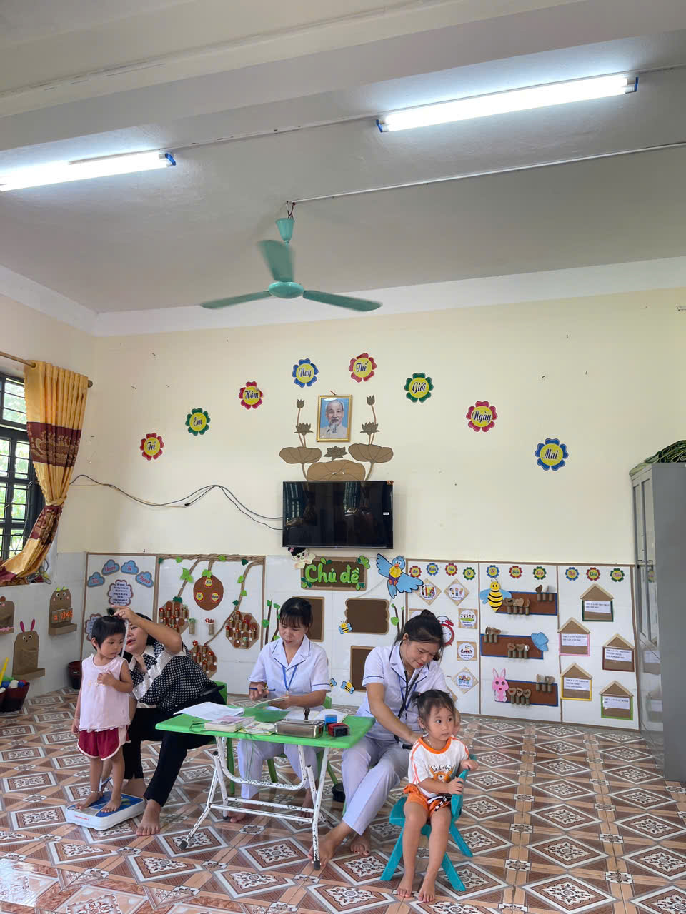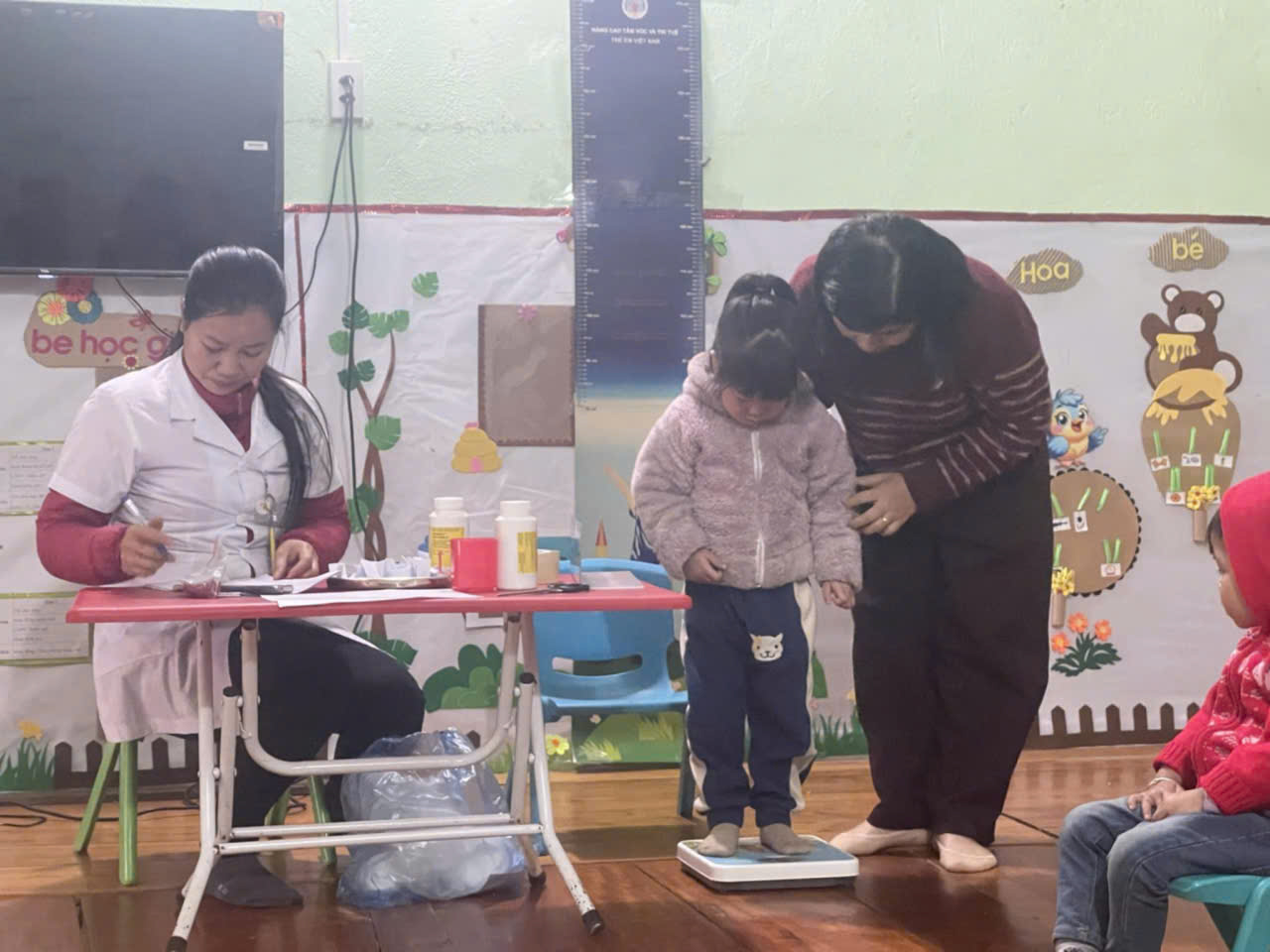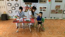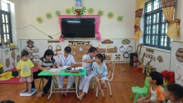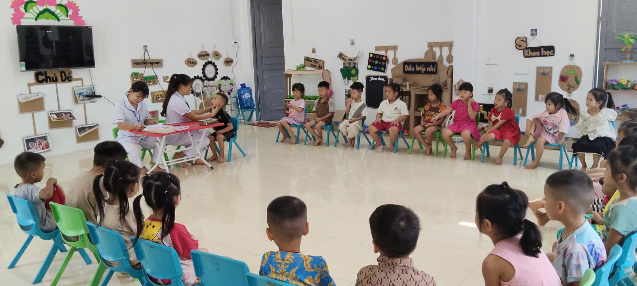 Trường mầm non Việt Hồng phối hợp với Trạm Y tế tổ chức cho trẻ uống Vitamin A và thuốc tẩy giun.