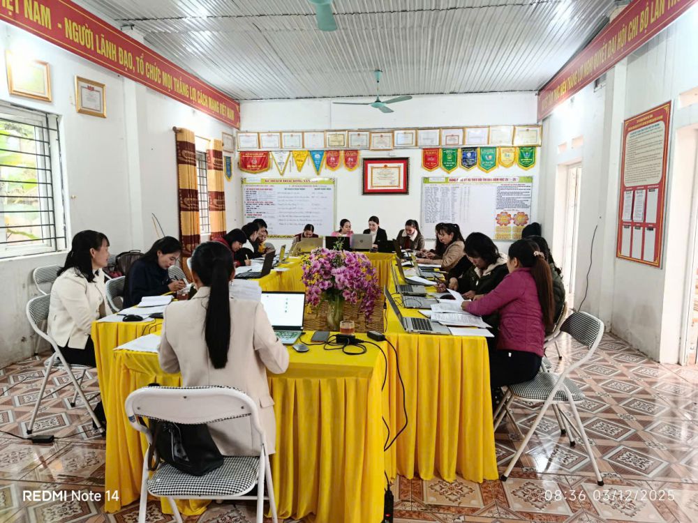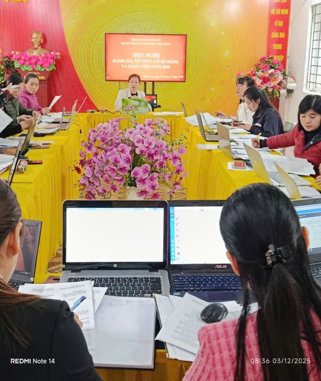 Thực hiện Hướng dẫn của Đảng ủy xã Hùng An về công tác đánh giá, xếp loại tổ chức cơ sở Đảng và đảng viên năm 2025, sáng ngày 03/12/2025, Chi bộ Trường Mầm non Việt Hồng đã tổ chức Hội nghị đánh giá, xếp loại tổ chức cơ sở Đảng và đảng viên năm 2025 trong không khí nghiêm túc, dân chủ và trách nhiệm cao.