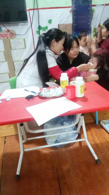 Trường mầm non Việt Hồng phối hợp với Trạm Y tế tổ chức cho trẻ uống Vitamin A và thuốc tẩy giun.