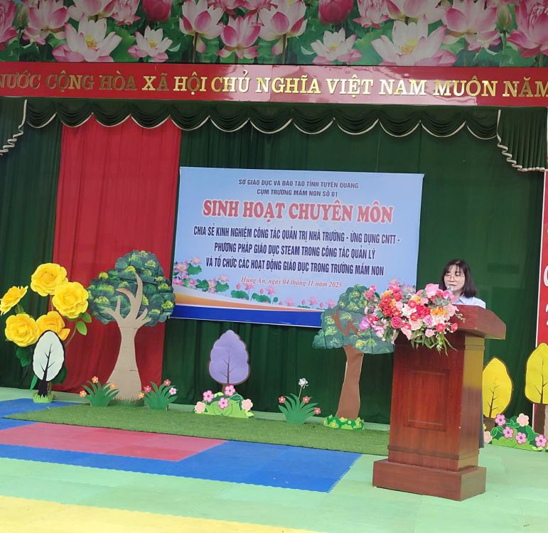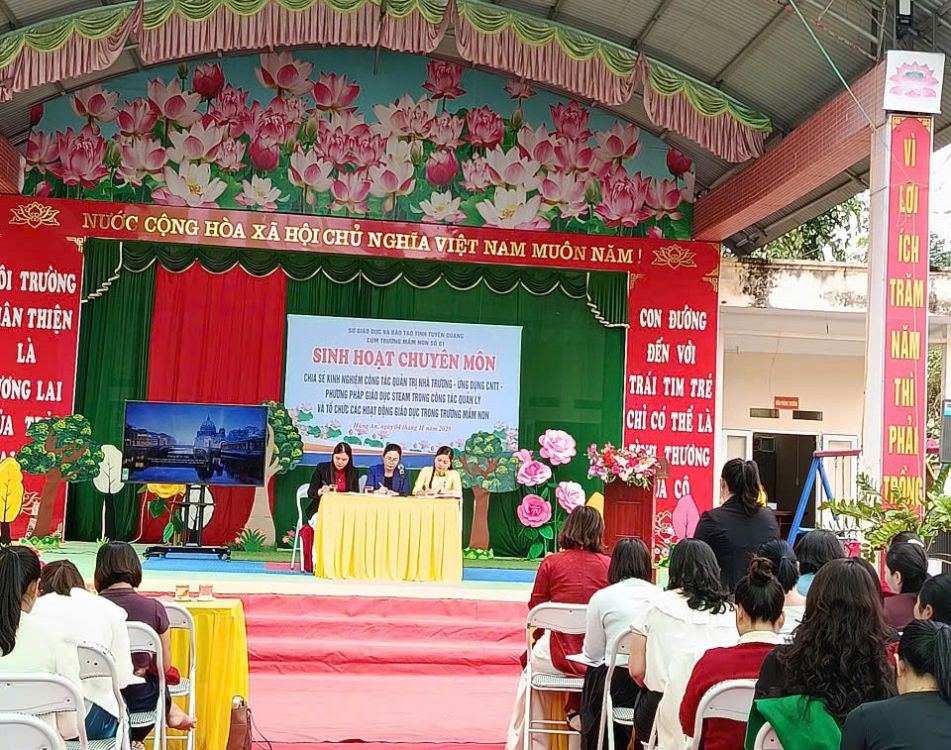 Buổi sinh hoạt chuyên môn cụm số 01 tại Trường Mầm non Việt Hồng đã diễn ra thành công tốt đẹp. Đây là dịp để các đơn vị trong cụm giao lưu, học hỏi, trao đổi kinh nghiệm, từ đó tiếp tục lan tỏa tinh thần đổi mới, sáng tạo trong giảng dạy, góp phần nâng cao chất lượng giáo dục mầm non toàn tỉnh Tuyên Quang.