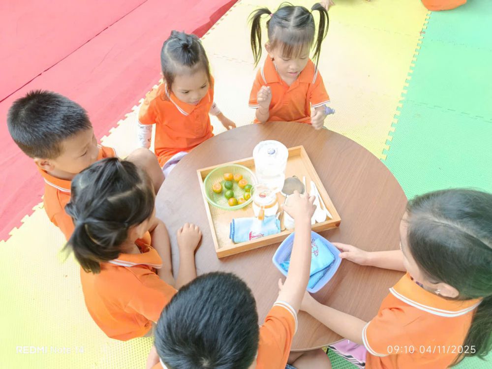 - Hoạt động lĩnh vực Phát triển nhận thức: Khám phá khoa học “Sự kỳ diệu của quả quất” – hoạt động ứng dụng giáo dục STEAM theo quy trình 5E, do cô giáo Phùng Thị Điệp, giáo viên Trường Mầm non Việt Hồng thực hiện.