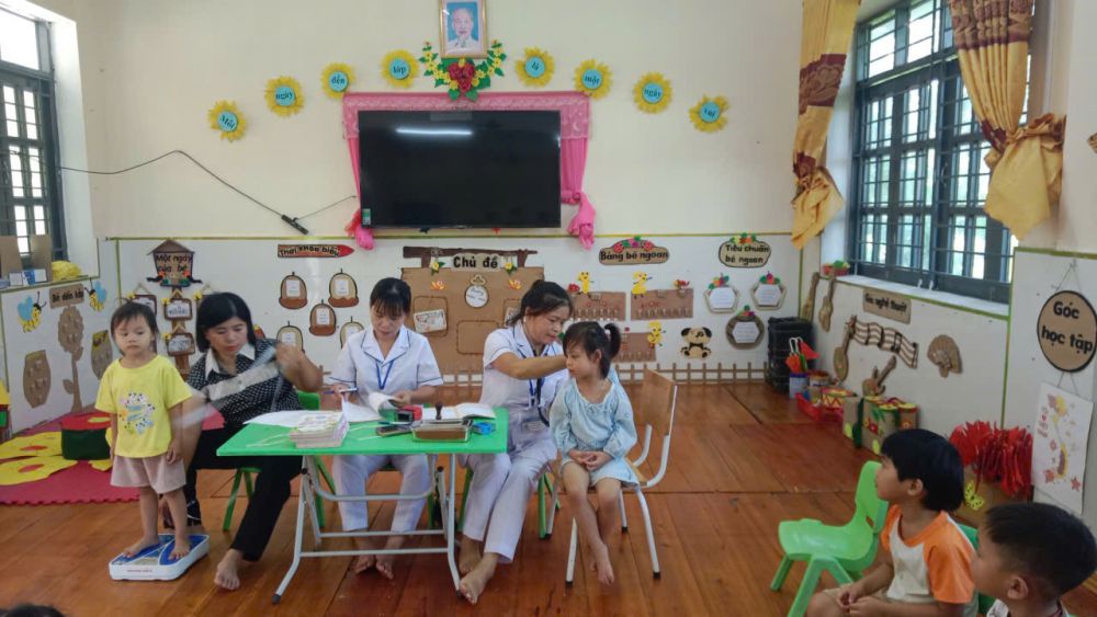 Hoạt động cân đo, khám sức khỏe giúp nhà trường nắm bắt chính xác tình trạng phát triển của từng trẻ, từ đó có kế hoạch phối hợp với phụ huynh trong việc chăm sóc, nuôi dưỡng, tạo điều kiện tốt nhất cho sự phát triển toàn diện của các con.