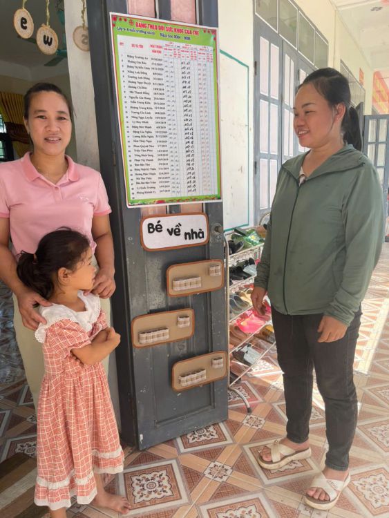 Ngay từ sáng sớm, sân trường đã ngập tràn tiếng cười nói, những gương mặt hồn nhiên, háo hức xen lẫn chút rụt rè của các bé khi được ba mẹ đưa đến trường. Các cô giáo trong tà áo dài tươi thắm, nụ cười rạng rỡ luôn dang rộng vòng tay đón chào, động viên để các con yên tâm bước vào lớp học mới, bạn bè mới.